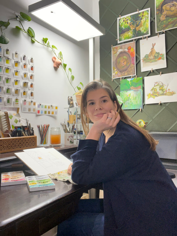 Die Bilder zu den vielseitigen Produkten entstehen analog, ganz im Sinne des tradtionellen Handwerks der Aquarell und Gouache-Technik, in meinem Atelier in 1030 Wien. Nachhaltig und CO2-neutral produziert in Österreich.
